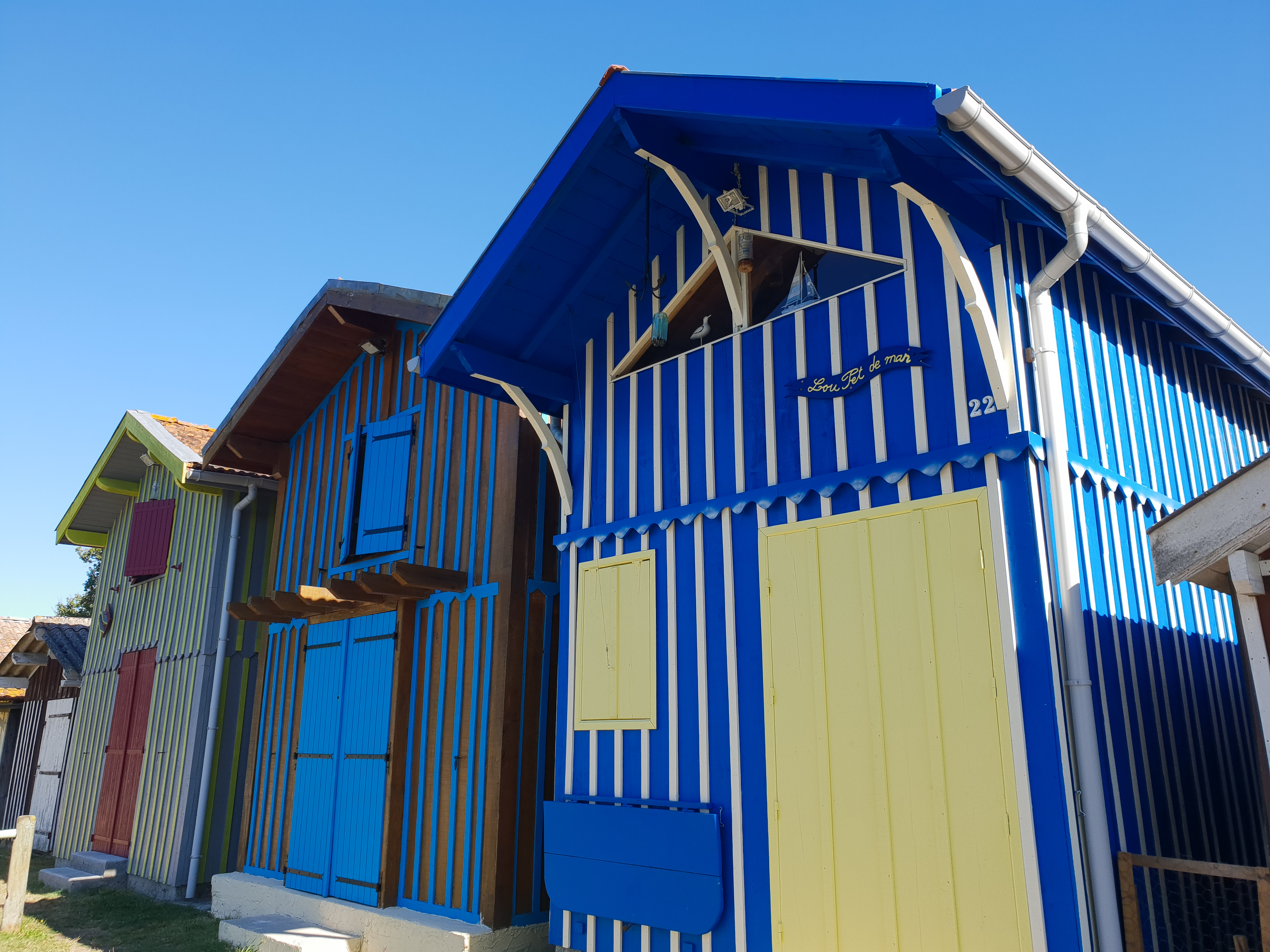 Nous démarrons par l’intimiste petit port de Biganos, une palette de couleurs infinies. Nous longeons de typiques cabanons à rayures multicolores. Un véritable terrain de jeu photographique !