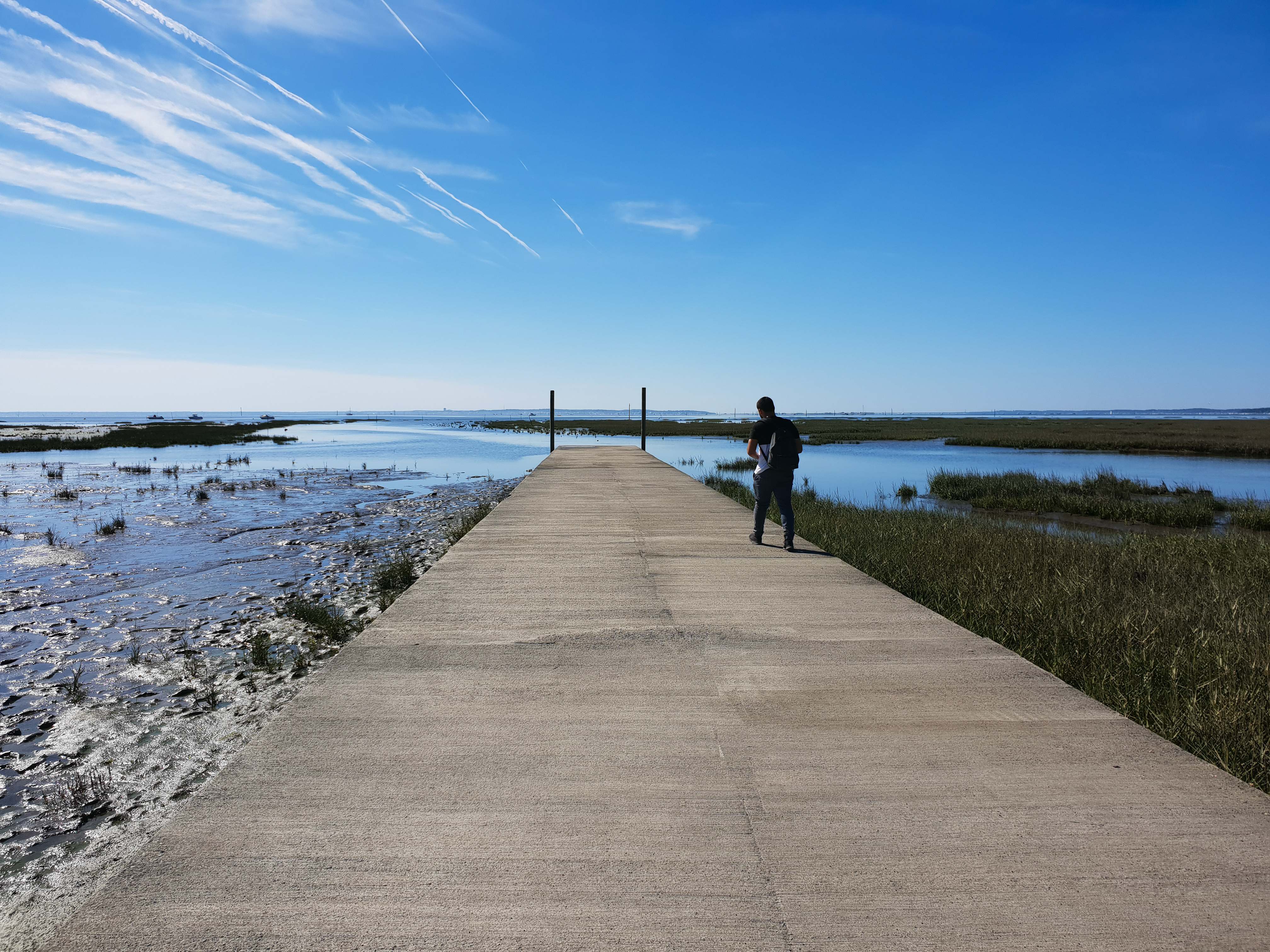 Notre deuxième étape nous mène à Arès, où nous faisons une balade, jusqu’à l’authentique petit port ostréicole. Nous longeons les prés salés, les bateaux ensablés par la marais basse et observons les oiseaux en vol au-dessus de nos têtes. Une fois au port, nous sommes surpris de la beauté à l’état brut et du charme inouï des lieux. Rien n’est surfait, tout est instagrammable. Nous nous installons sur une jolie terrasse, au bord d’un canal que les ostréiculteurs traversent pour rejoindre le bassin ou livrer la marchandise du jour. L’occasion pour nous de déguster un plateau de fruits de mer et notamment les célèbres huîtres arcachonnaises.